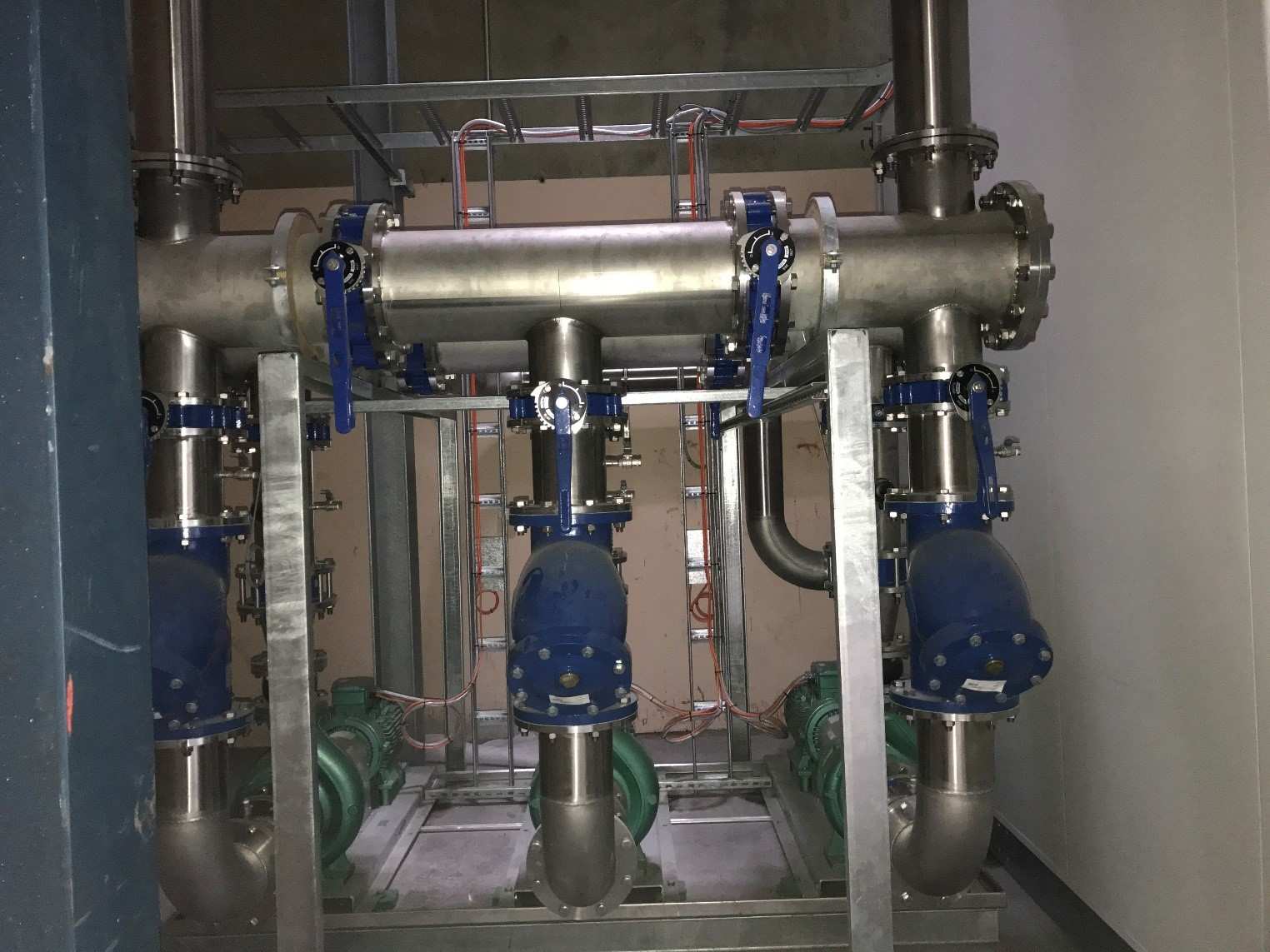 - 2 of Ammonia / glycol flooded plate heat exchanger with duty standby recirculation pumps.